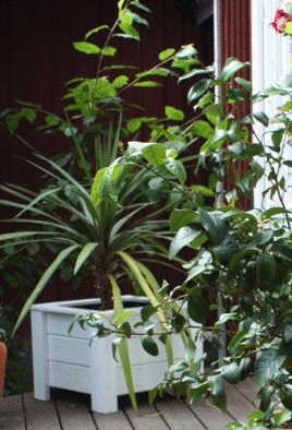 När vi har tillverkat olika saker till trädgården eller som inredning i vinterträdgården så har vi i möjligaste mån använt oss av återvunnet material eller begagnade saker som vi förädlat.