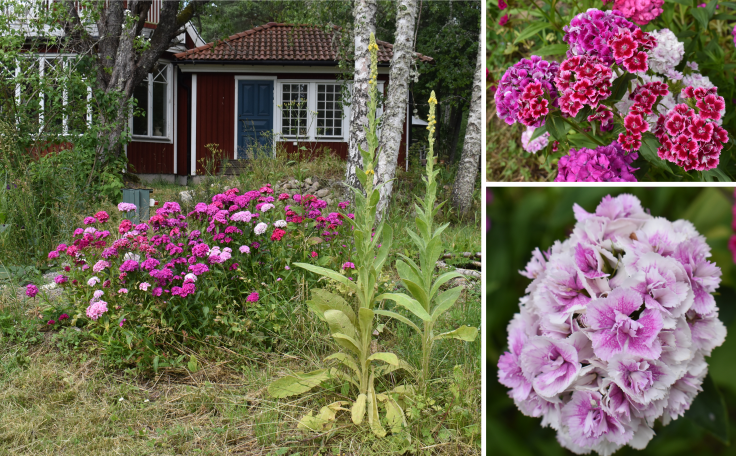 29/6-2025 På senvintern 2024 sådde jag frön av Borstnejlika. Dianthus barbatus Utan att riktigt veta vad jag skulle få upp så planterade jag ut ett större antal plantor på hösten. Det blev en mycket glad överraskning, enastående blomning som har stått länge och är även mycket bra som snittblommor.