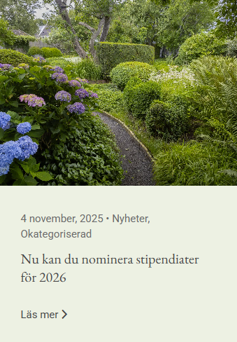 Vi har nu stängt trädgården för säsongen men vi återkommer till våren. Vi tackar alla besökare som gästat oss under säsongen och som gett oss många fantastiska trädgårdsmöten. Välkomna tillbaka under säsongen 2026