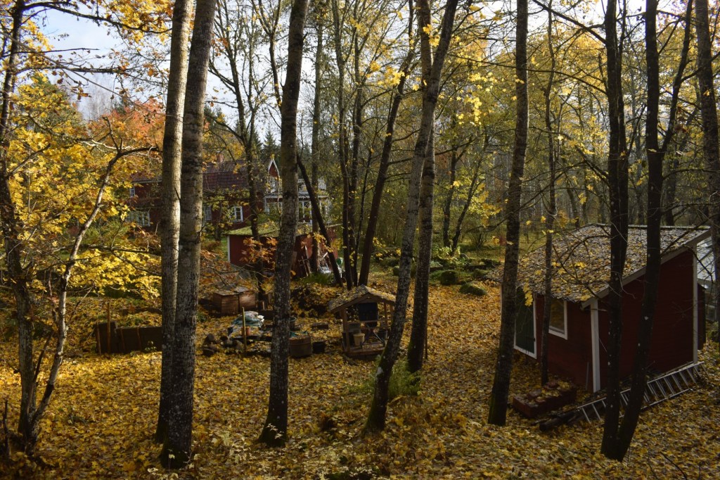 Härlig tid i trädgården, precis innan vintern kommer och snön lägger sig så brinner trädgården av höstlövens fina färgprakt och solens matta strålar som än mer förstärker färgerna.