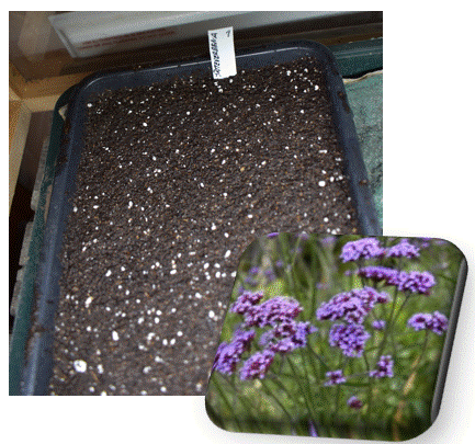 Äntligen, årets första sådd, 120 st pyttesmå frön av Jätteverbena kom i jorden, svårt att tro att de ska kunna bli som på bilden, men det har ju gått tidigare.