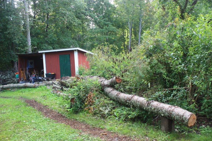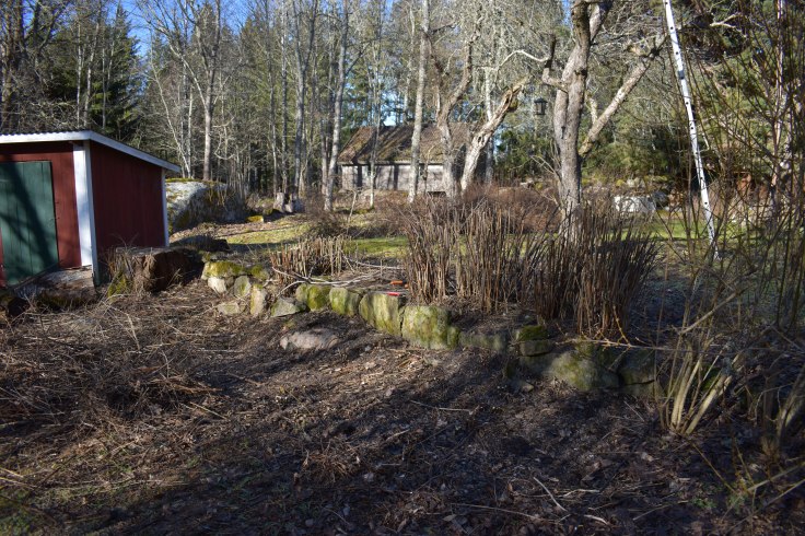 Nu tog vi i ordentligt och tänkte att det får bära eller brista, inte blev det mycket kvar men ska bi kul att se om det kommer igen Rumsligheten försvann dock så vi får hitta på något annat under tiden men det blev bra mycket mer plats och den gamla muren blev synlig.
