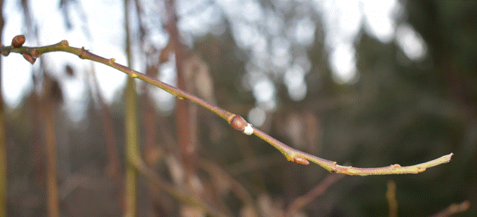 En liten liten början till videkiss på min Hängvide/Sälg, Salix caprea ‘Kilmarnock’. Lite extra glädje då jag trott att jag tagit död på trädet genom för dålig vattning, men verkar som att jag får en andra chans.