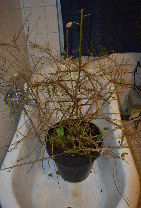 Gick lös med sekatören på vår Bougainvillea idag. Ser inte mycket ut för världen. Men nu är den också nybadad och ska få komma in i lite mer värme i vinterträdgården i väntan på våren.