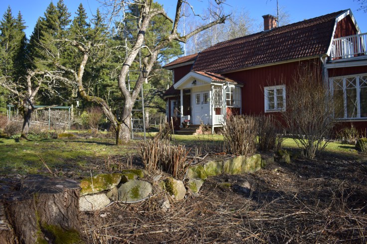 Härlig trädgårdshelg i ett väder som gav föraning om våren. I strålande sol gav vi oss på vår sedan länge förvuxna häck som blev rätt illa tilltygad när körsbärsträdet fälldes över den.
