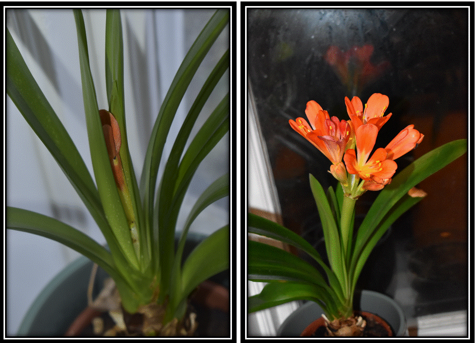 Nu börjar det hända saker i fönsterkarmarna. Min Mönjelilja, Clivia miniata, har satt igång att blomma. Det är lite speciellt med växter som man får dalta lite med för att få den att blomma. För att aktivera blomanlagen behöver den en period med lite lägre temperatur. Jag brukar ställa in den i orangeriet på senhösten och plockar fram den i februari då den får komma in i rumstemperatur och får mer vatten och näring. I februari började första knoppen att titta fram och nu står den i full blom.
