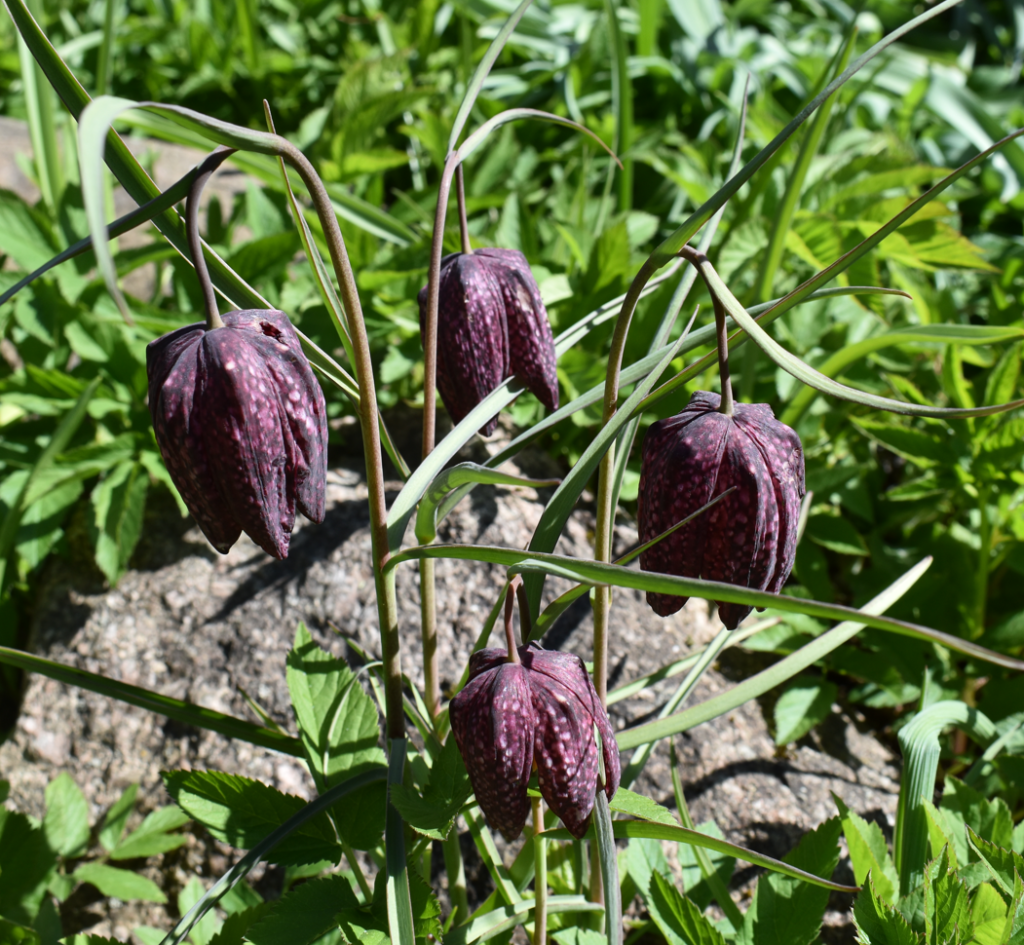 och slutligen stoltserar Kungsängsliljorna (Fritillaria meleagris) med sina magnifika klockor