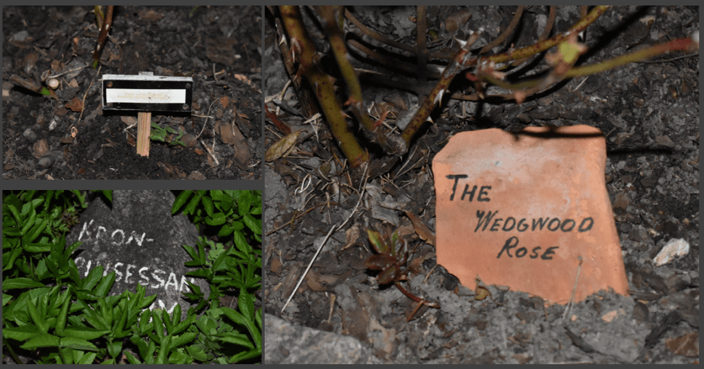 Märkning av växter är inte lätt har inte alltid fungerat utan namnen har försvunnit från etiketterna. Söker förtvivlat efter något bra och beständigt sätt att märka mina växter. Jag har provat med olika skyltar eller att tex. måla på stenar.