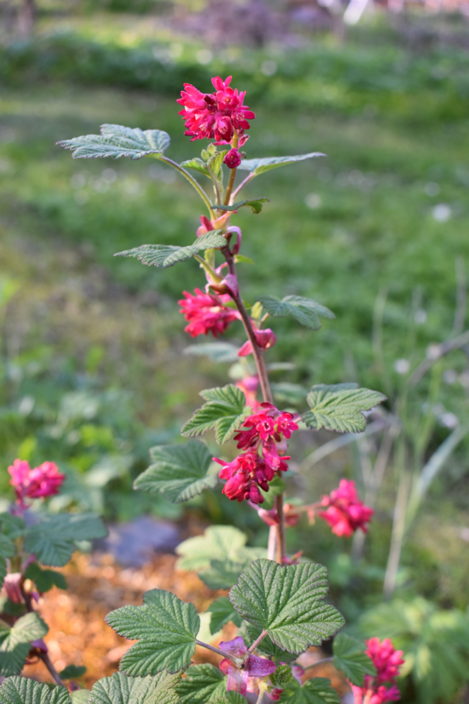 En ny buske i vår trädgård är en fantastisk rödblommande variant som vi planterade in förra året och som nu belönar oss med fantastisk vårblomning. Rosenrips Ribes sanguineum ‘Koja’