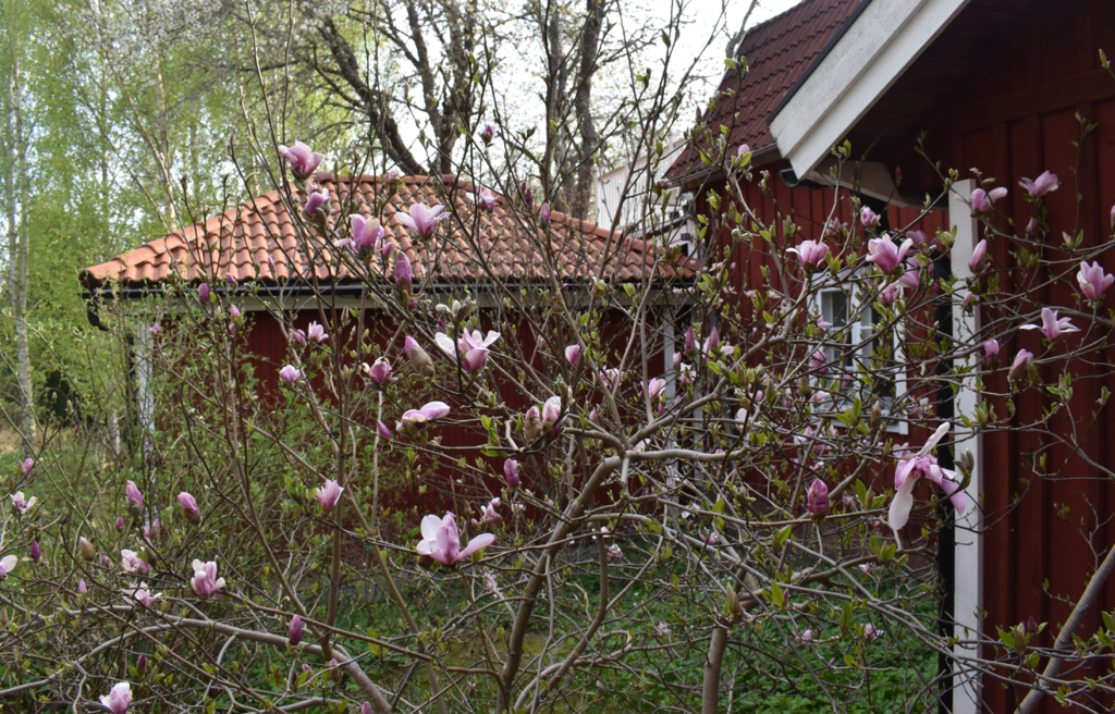 Magnoliatid, en av de bästa stunderna i trädgården är när man kan sitta på altanen och se de magnifika magolierna som blommar på bar kvist.