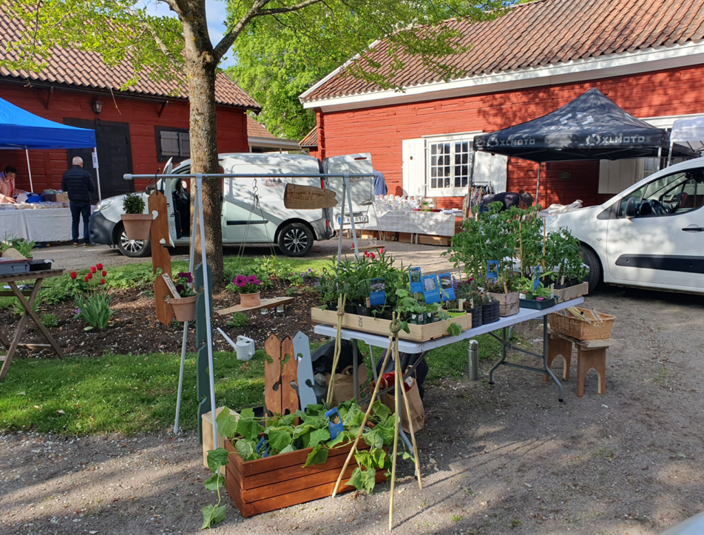 Mina ev. farhågor försvann snabbt när massor med köpsugna människor dök upp, ivriga att köpa det mesta som stod på bordet. I första hand var det grönsakerna som lockade, tomaterna försvann snabbt och gurkan likaså. Purjolöken var också av stort intresse. Av övriga växter var det Jätteverbenan som tilldrog sig mest intresse. Jag var tidigt på plats, kl. 7 var bordet uppdukat, kl 8 kom första kunden fast att det officiellt öppnade först kl 10. Skulle nog önska att man är hårdare på öppettiden. Efter 8 timmar kunde jag packa ihop vid 15-snåret och summerade en fantastisk dag fylld med trevliga samtal med många trädgårdssugna människor och rätt mycket klirr i kassan.