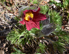 Idag kan man i trädgården även hitta, Backsippa – pulsatilla Vulgaris som precis håller på att öppna sina lila klockor